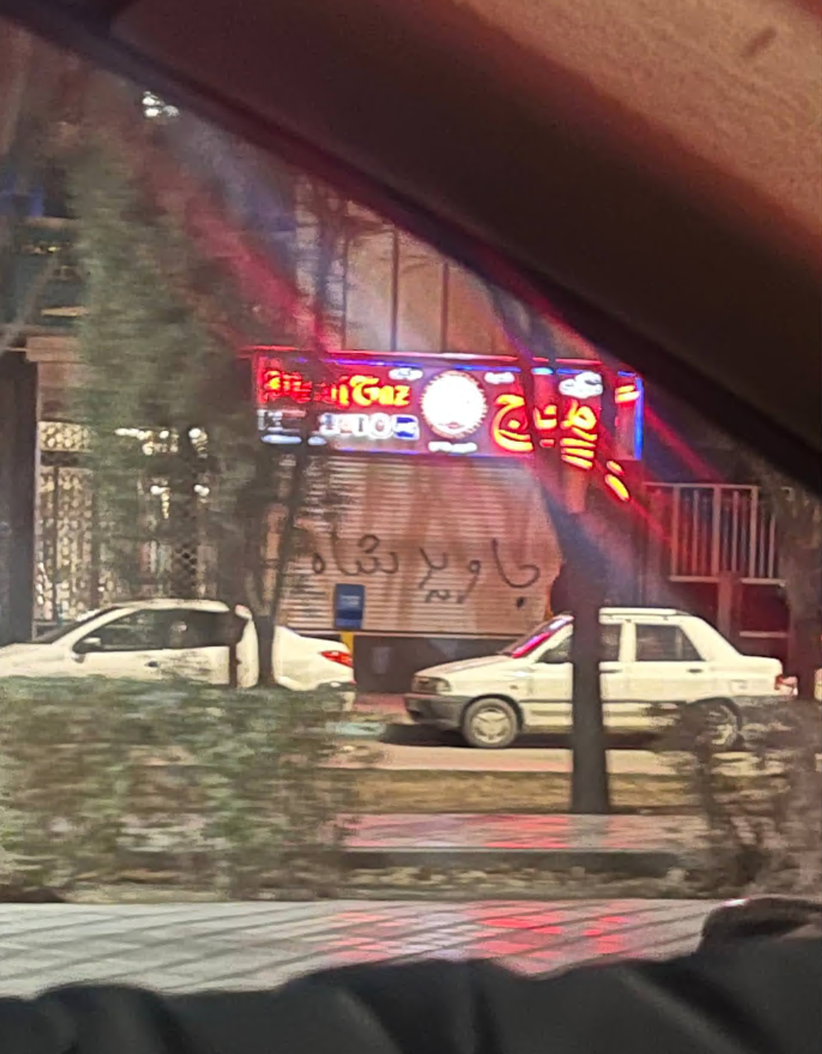 Pro-monarchy graffiti sprayed on store door in Isfahan