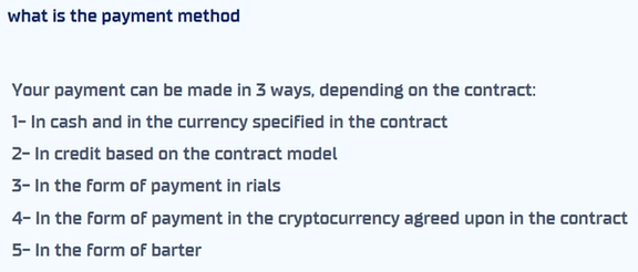 The portal’s payment terms say contracts can be settled using “digital currencies,” local currencies in the buyer’s country and barter arrangements, alongside more traditional bank transfers.