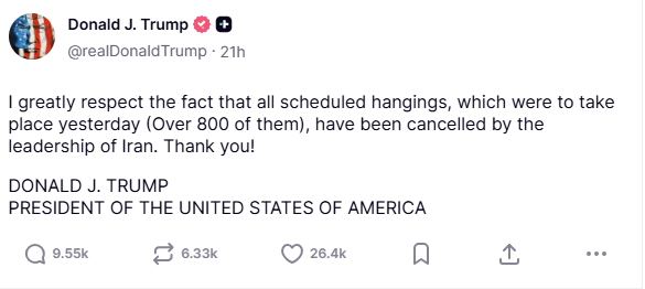 No Iranian officials have publicly confirmed the existence of the 800 death-row cases Trump referenced.