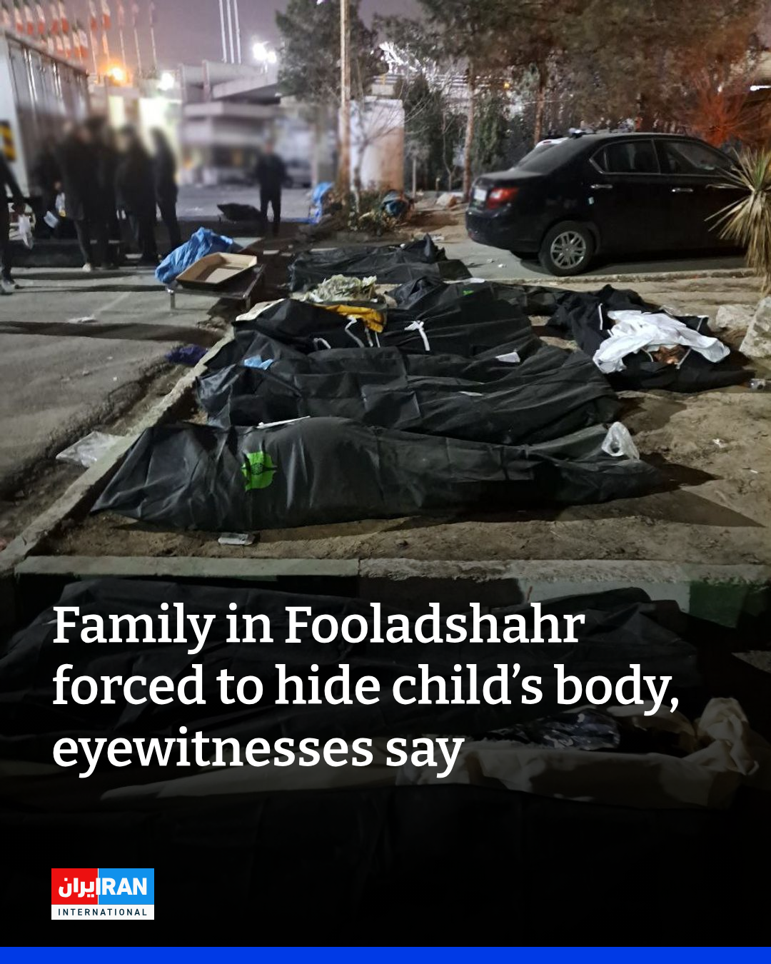 A message from eyewitnesses in the industrial town of Fooladshahr, near Isfahan, sent to Iran International describes what locals say is a “massacre” of protesters and intense pressure on grieving families, including a case in which relatives kept a child’s body at home overnight using ice from neighbors because they could not bury him.