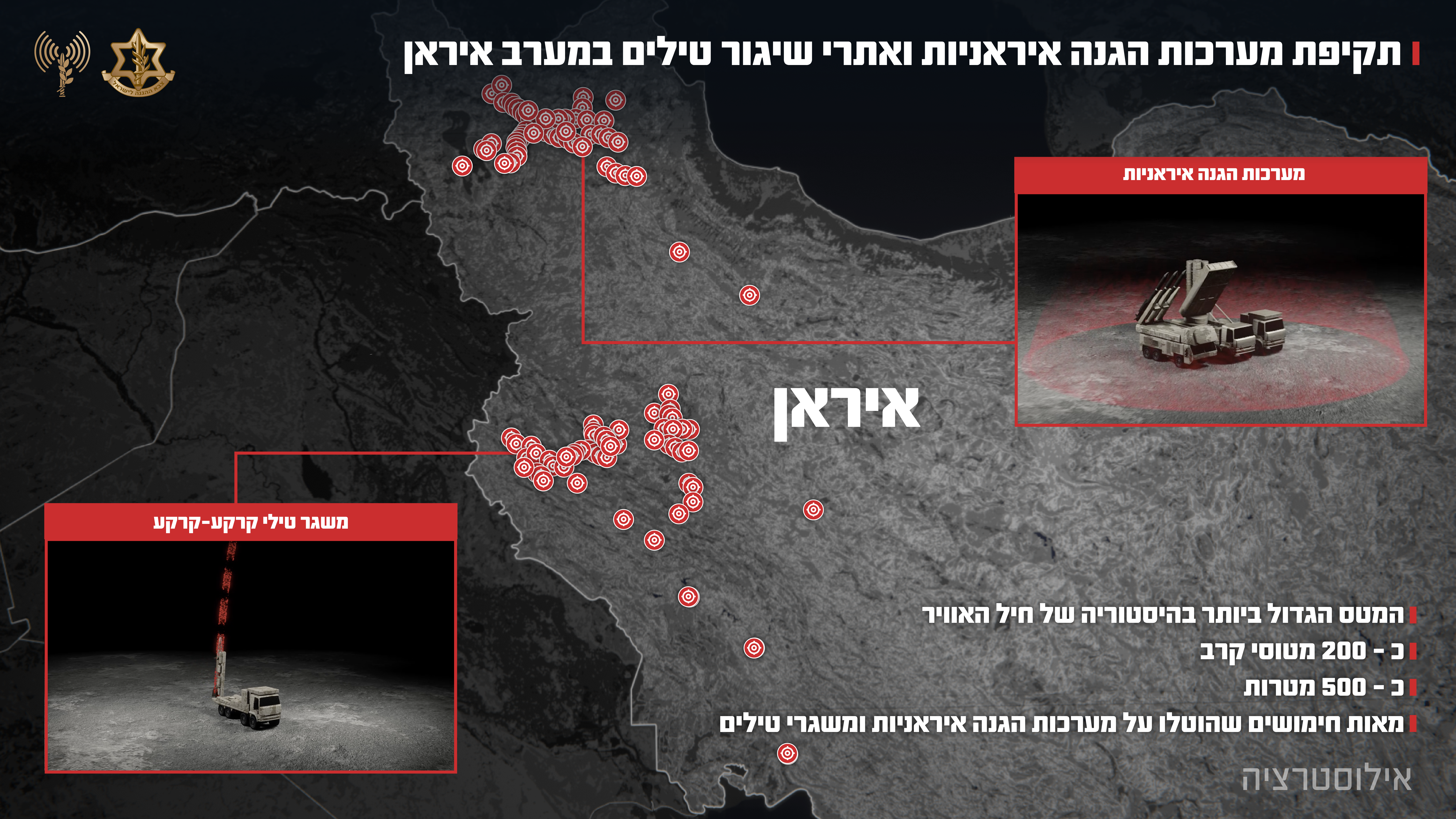 The spokesperson said the operation, directed by military intelligence and the air force, involved hundreds of munitions dropped on nearly 500 targets, including air-defense batteries and missile launchers.