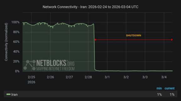 Iran internet blackout passes 100 hours, NetBlocks says