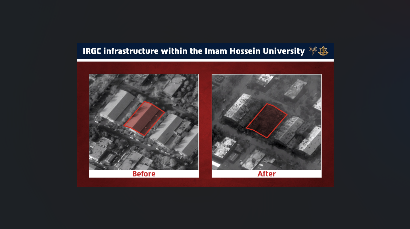 The Israeli military said on Monday it had struck military infrastructure at Imam Hossein University in Tehran, describing it as a key facility linked to the Islamic Revolutionary Guard Corps.