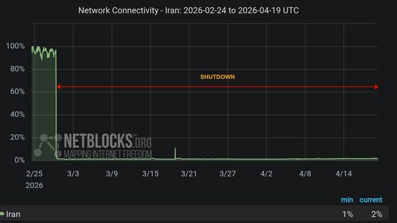 “As peace negotiations appear to flounder, one of the most important factors for Iranians, the restoration of international connectivity, is still overlooked," NetBlocks said.