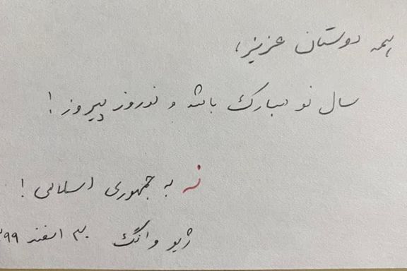ژیو وانگ، پژوهشگر آمریکایی چینیتبار که از مرداد سال ۹۵ تا آذر سال ۹۸ به مدت سه سال و ۴ ماه در ایران بازداشت و زندانی بود، با حمایت از کارزار نه به جمهوری اسلامی در صفحه توییتر خود به فارسی نوشت: «دوستان عزیز، سال نو مبارک باشد و نوروز پیروز. نه به جمهوری اسلامی.»