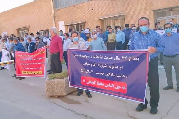 کارکنان شرکت نفتوگاز گچساران در اعتراض به نحوه اجرای افزایش حقوق در محوطه شرکت تجمع کردند