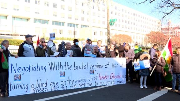 گروهی از کردهای مقیم واشینگتن دی‌سی در اعتراض به اعدام حیدر قربانی تجمع کردند