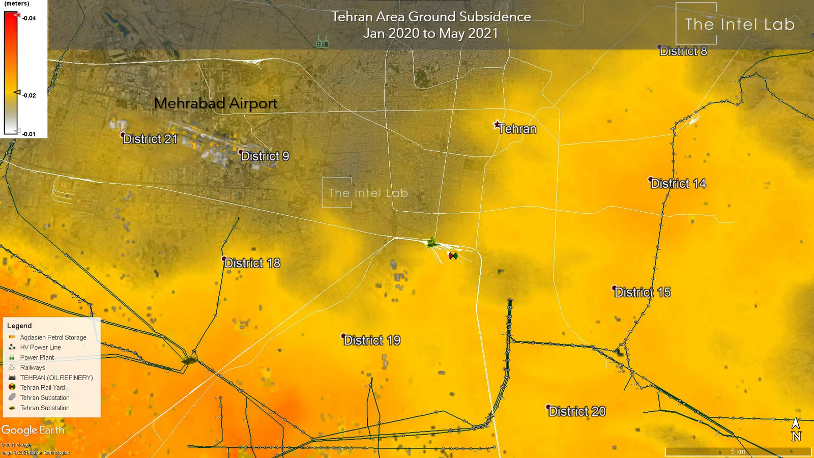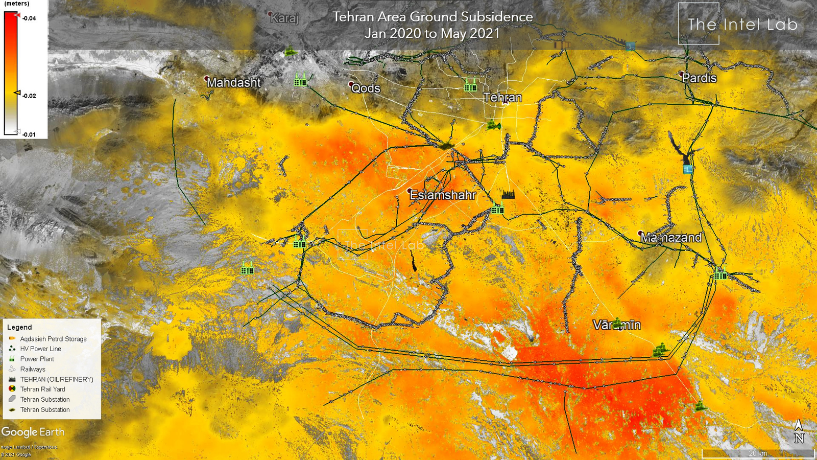 وبسایت موسسه تحقیقاتی و اطلاعاتی اینتل لب نسبت به موارد پی‌درپی فرونشست زمین در استان تهران هشدار داد و آن را همچون یک «بمب ساعتی بی‌صدا» توصیف کرد.