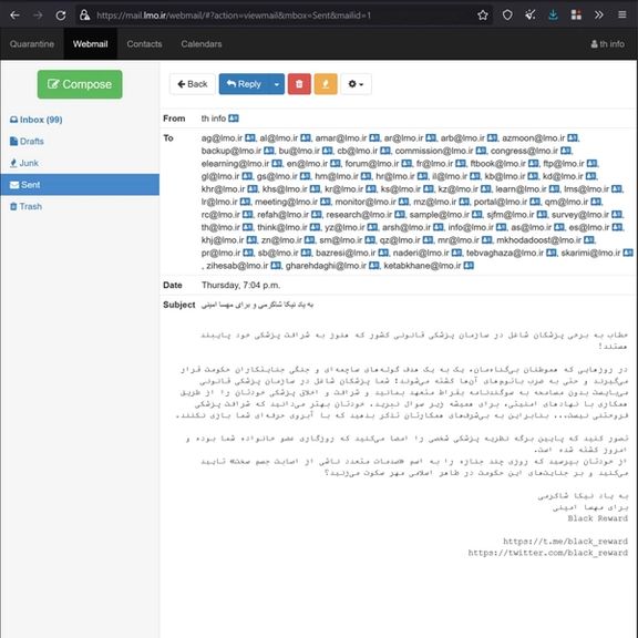 این گروه همچنین با ارسال ایمیل به پزشکان شاغل در «سازمان پزشکی قانونی کشور» از آنها درخواست کرد تا «شرافت و اخلاق پزشکی را طریق همکاری با نهادهای امنیتی زیر سوال نبرند.»