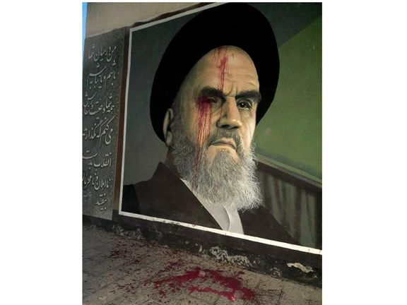 رنگ خون بر صورت خمینی روی دیوار دانشگاه خوارزمی کرج