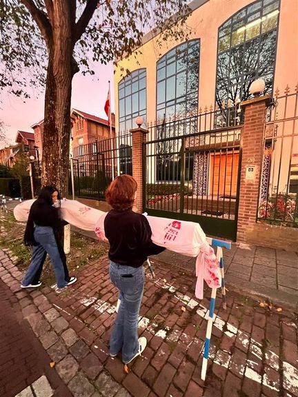 قرار دادن دو جنازه نمادین مقابل سفارت جمهوری اسلامی در هلند