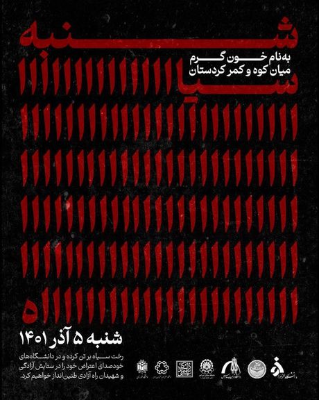 جمعی از دانشجویان دانشگاههای تهران، تربیت مدرس، ملی (بهشتی)، الزهرا، امیرکبیر، خوارزمی و صنعتی خواجه نصیرالدین طوسی، روز پنجم آذر را «شنبه سیاه دانشگاه» خواندند و از دانشجویان خواستند با پوشیدن رخت سیاه برای حمایت از مردم کردستان، تجمعی اعتراضی بر پا کنند.