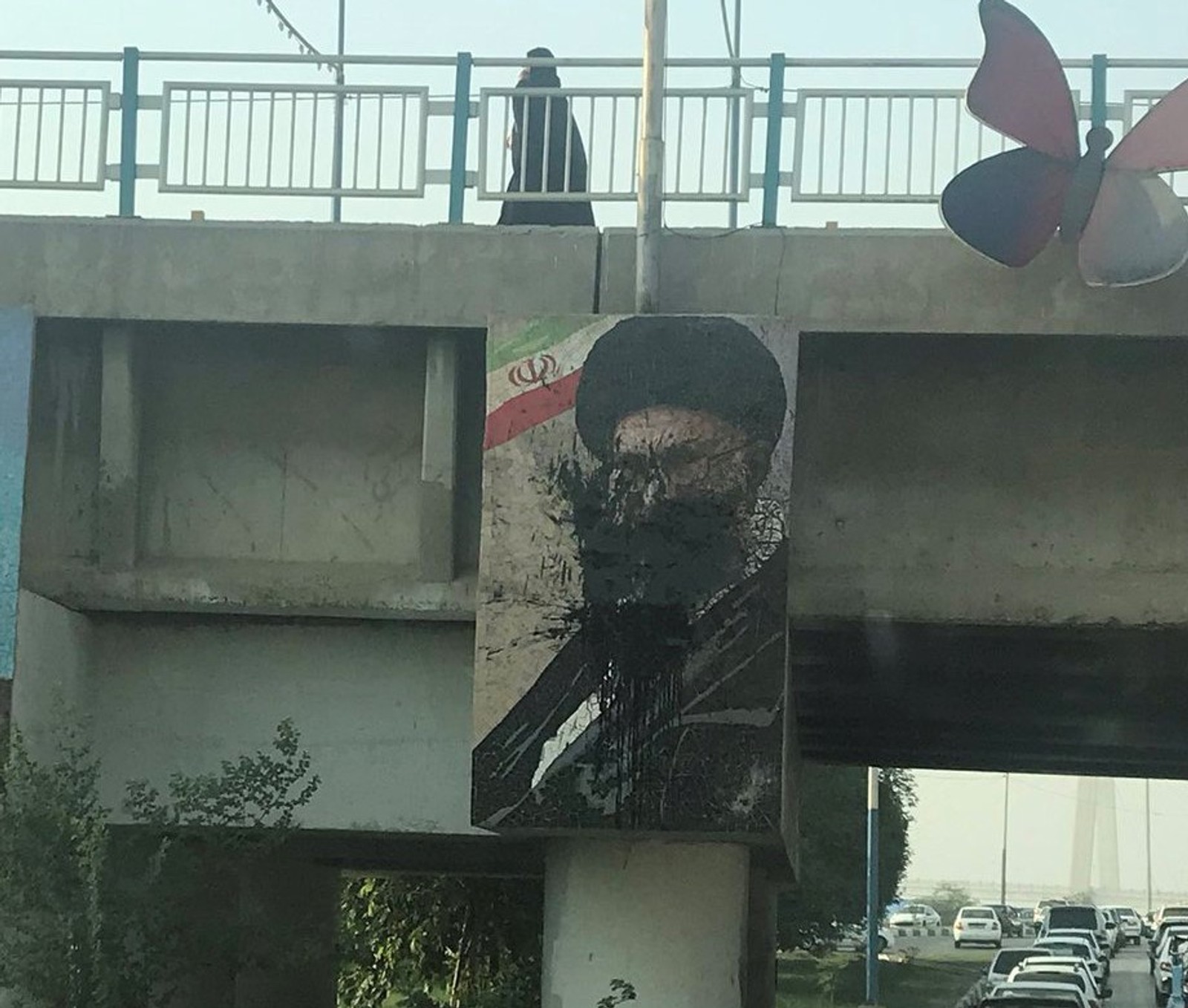 حرکت اعتراضی روی برد بسیج دانشجویی دانشگاه تهران