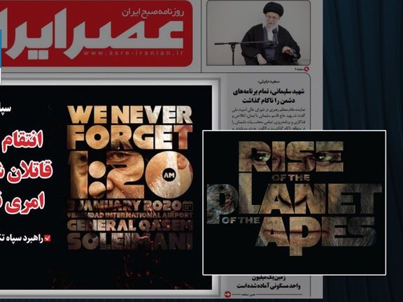 روزنامه عصرایرانیان در سالگرد کشته شدن قاسم سلیمانی، طرحی از او در صفحه یک منتشر کرده که شباهت زیادی به پوستر تبلیغاتی فیلم آمریکایی «ظهور سیاره میمونها» دارد.