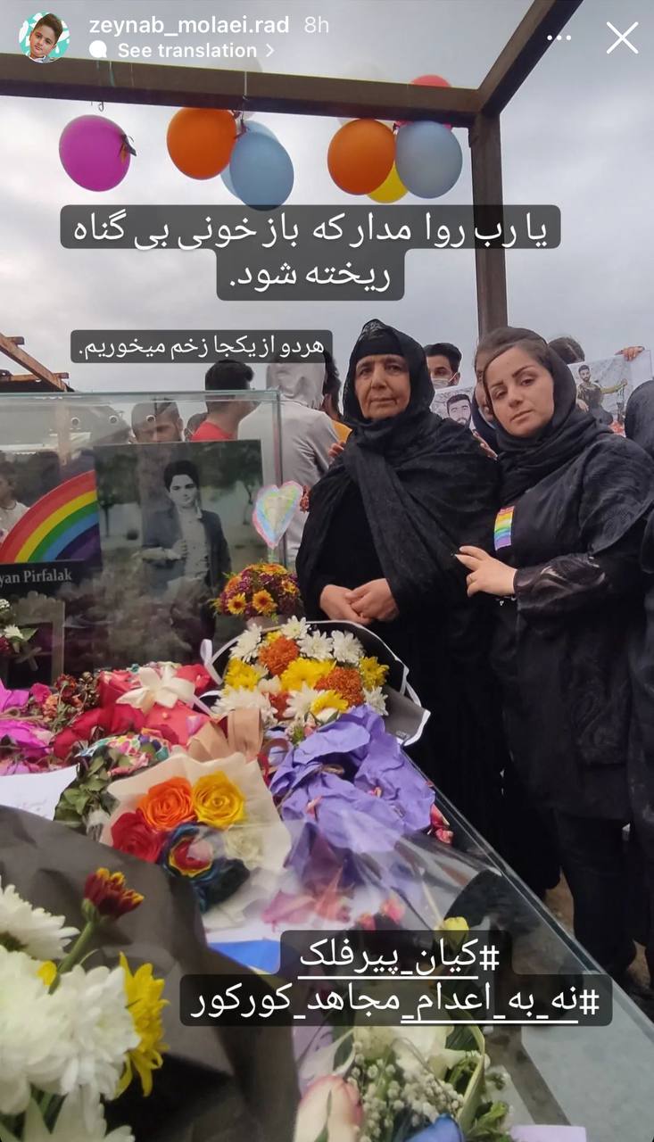 مادر کیان پیرفلک در عکسی همراه مادر مجاهد کورکور: یارب روا مدار باز خون بیگناه ریخته شود