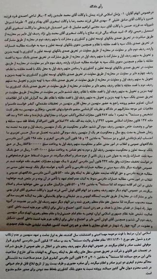 به گفته یک منبع مطلع، رای دادگاه کیفری در رای دادگاه انقلاب تجمیع شده و احکام صادر شده، رای نهایی برای هر دو دادگاه هستند.