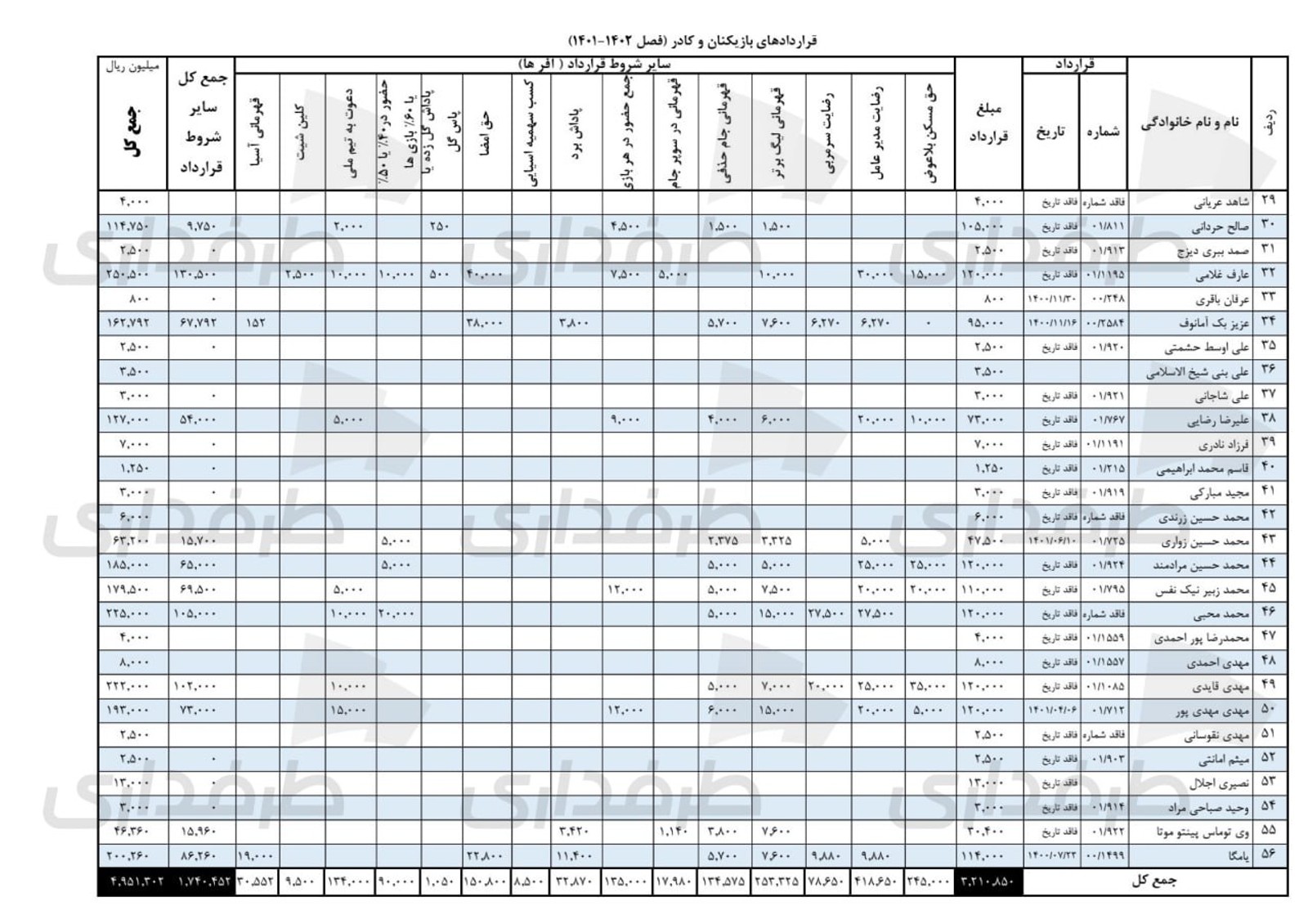 روز گذشته هم سایت طرفداری، فهرست قرارداد بازیکنان پرسپولیس در فصل گذشته فوتبال ایران را منتشر کرده است. براساس این فهرست، یحیی گل‌محمدی با آپشن‌های مختلف ۲۵.۵ میلیارد تومان گرفته است. قرارداد بیرانوند هم با آپشن‌ها حدود ۲۲ میلیارد تومان بوده است.