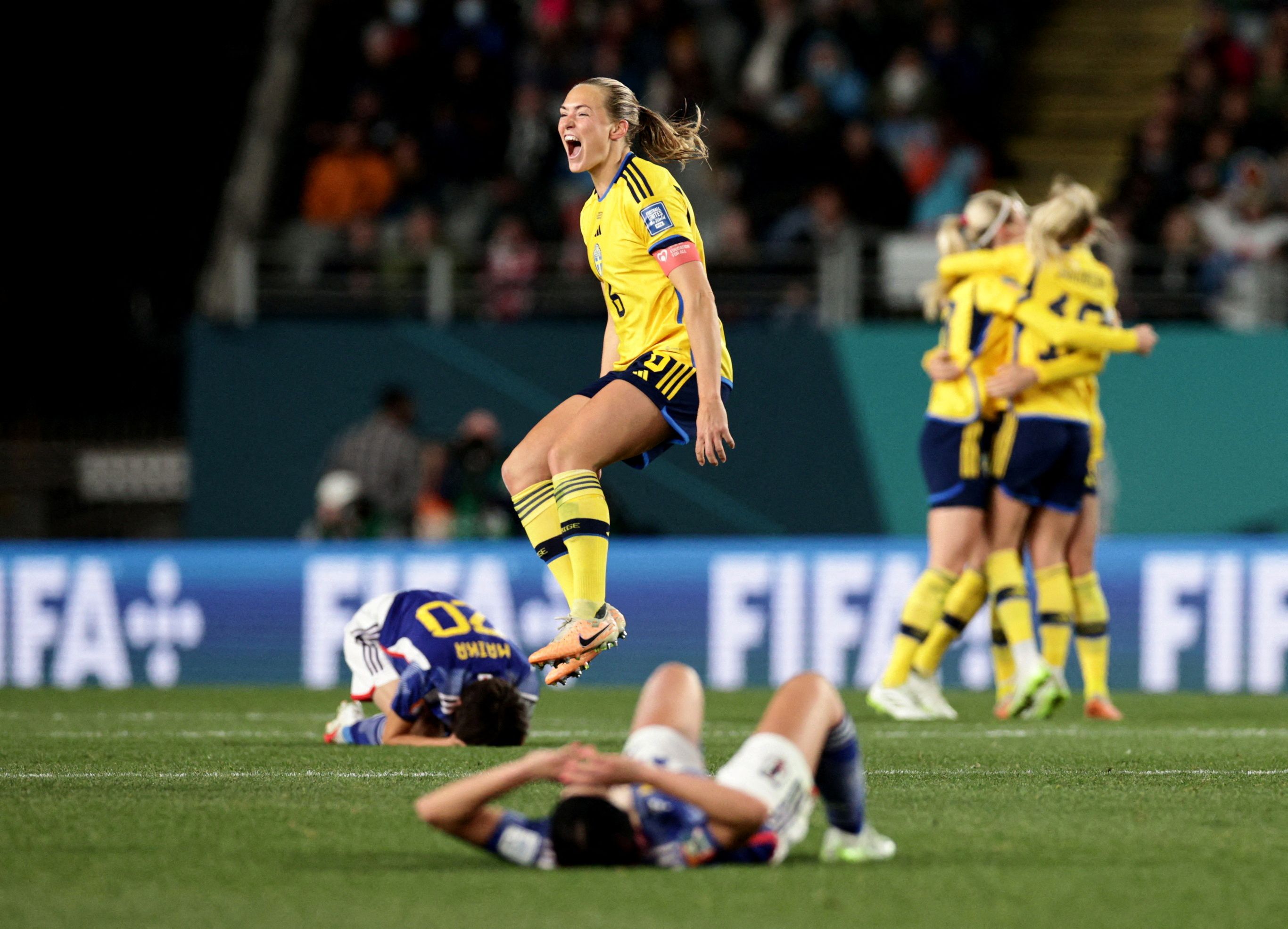 در دومین بازی، سوئد که در مرحله قبلی با حذف آمریکا شگفتیساز شده بود، ژاپن را با نتیجه ۱-۲ شکست داد تا حریف اسپانیا در نیمهنهایی شود.