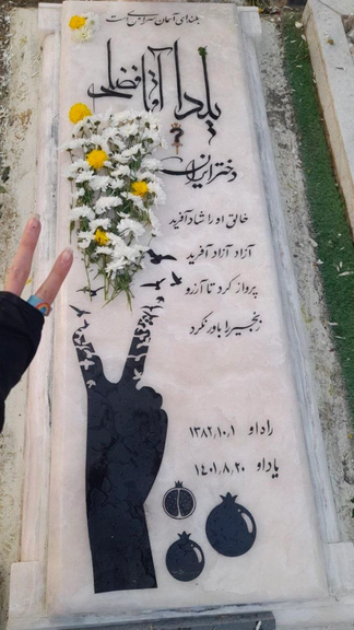قبر یلدا آقافضلی دیگر کشته اعتراضات تاکنون پنج بار تخریب شده است. او معترض ۱۹ سالهای بود که روز چهارم آبان با خشونت شدید نیروهای امنیتی در خیابان انقلاب دستگیر شد، درباره نحوه دستگیریاش گفته بود: «چهل مامور به سمتش حمله کردهاند، یکی از آنها نزدیک بوده او را با موتور زیر بگیرد. بعد او را روی زمین کشیدهاند و چنان دستهایش را با دستبند بستهاند که رگهایش را حس نمیکرد.» او در ۱۵ آبان از زندان قرچک آزاد شد و در پیامی صوتی به دوستانش گفت که با وجود فشارهای بازجویانش، هرگز ابراز پشیمانی نکرده. او گفته بود که در زمان بازداشتش در زندان به شدت مورد ضرب و شتم شدید قرار گرفته است. یلدا هنگام آزادی از زندان و در اغلب ویدیوها و عکسهایش هفت پیروزی را نشان میداد. پنج روز پس از آزادی، یک شب خوابیده و بیدار نشده است. روی سنگ قبرش هفت پیروزی را حک کرده بودند. هفتی که سه بار توسط نیروهای امنیتی پاک شد و بعد به تخریب صورتش اقدام کردند. پدرش در واکنش به تخریبها گفت این حقارت آنها و بزرگی یلدا را نشان میدهد. بر روی سنگ قبرش نوشتهاند: «هیچ وقت زنجیر را باور نکرد.»