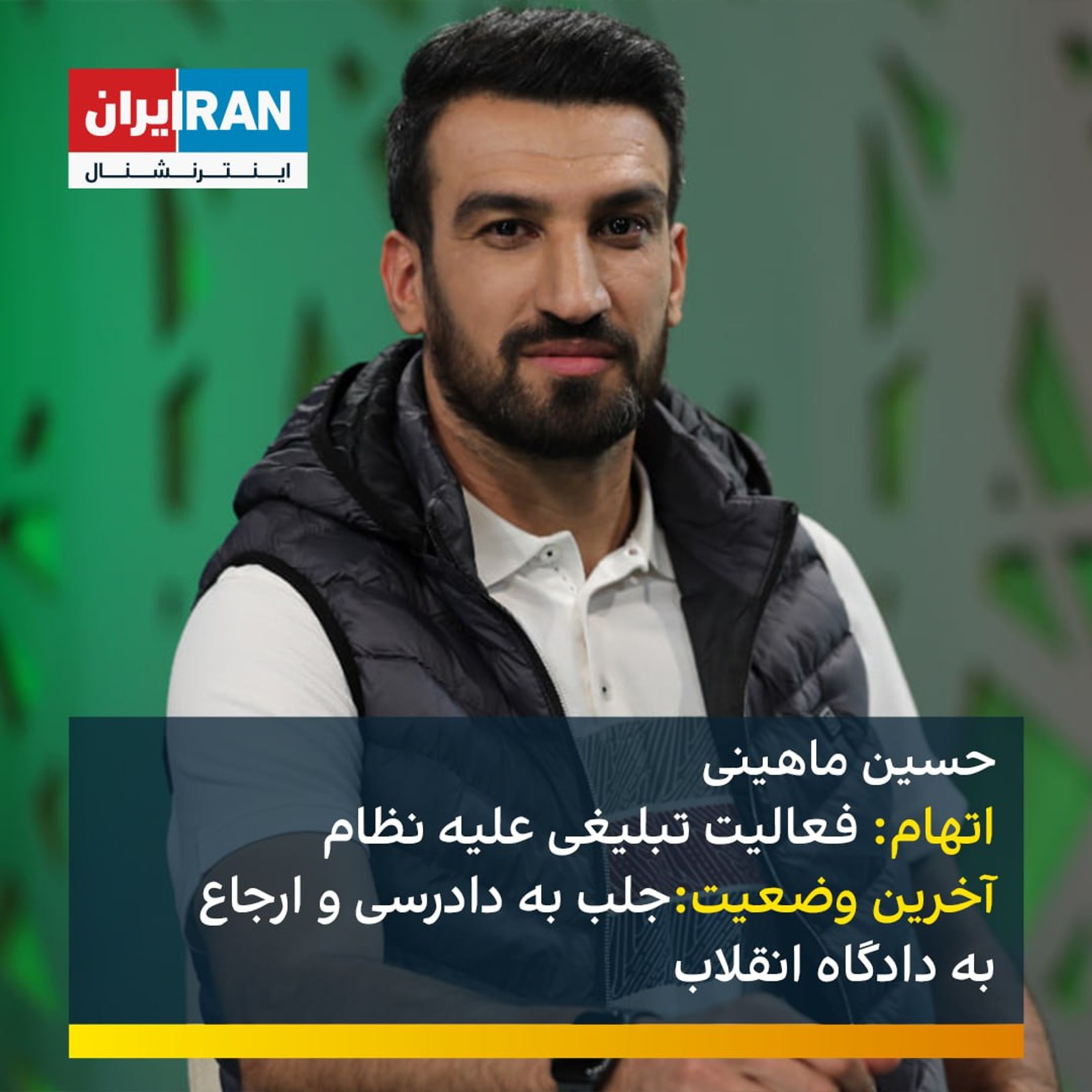 حسین ماهینی، کاپیتان پیشین پرسپولیس، در پرونده به شماره کلاسه ۱/۰۱۰۰۳۸۳ب به فعالیت تبلیغی علیه نظام متهم شده که در نهایت پرونده با صدور قرار جلب به دادرسی و کیفرخواست به دادگاه انقلاب ارسال شده است.