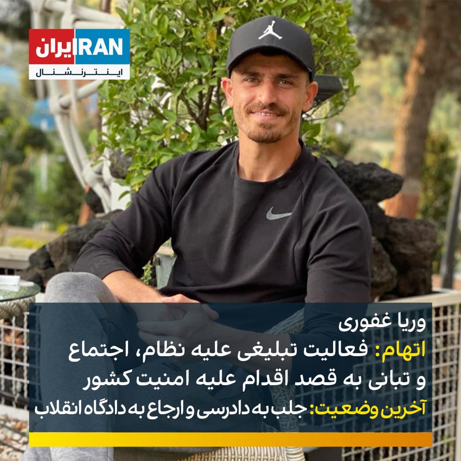 وریا غفوری، کاپیتان پیشین استقلال، در پرونده به شماره کلاسه ۱/۰۱۰۰۳۸۴ب به فعالیت تبلیغی علیه نظام، اجتماع و تبانی به قصد اقدام علیه امنیت کشور متهم شده که در نهایت پرونده با صدور قرار جلب به دادرسی و کیفرخواست به دادگاه انقلاب ارسال شده است.