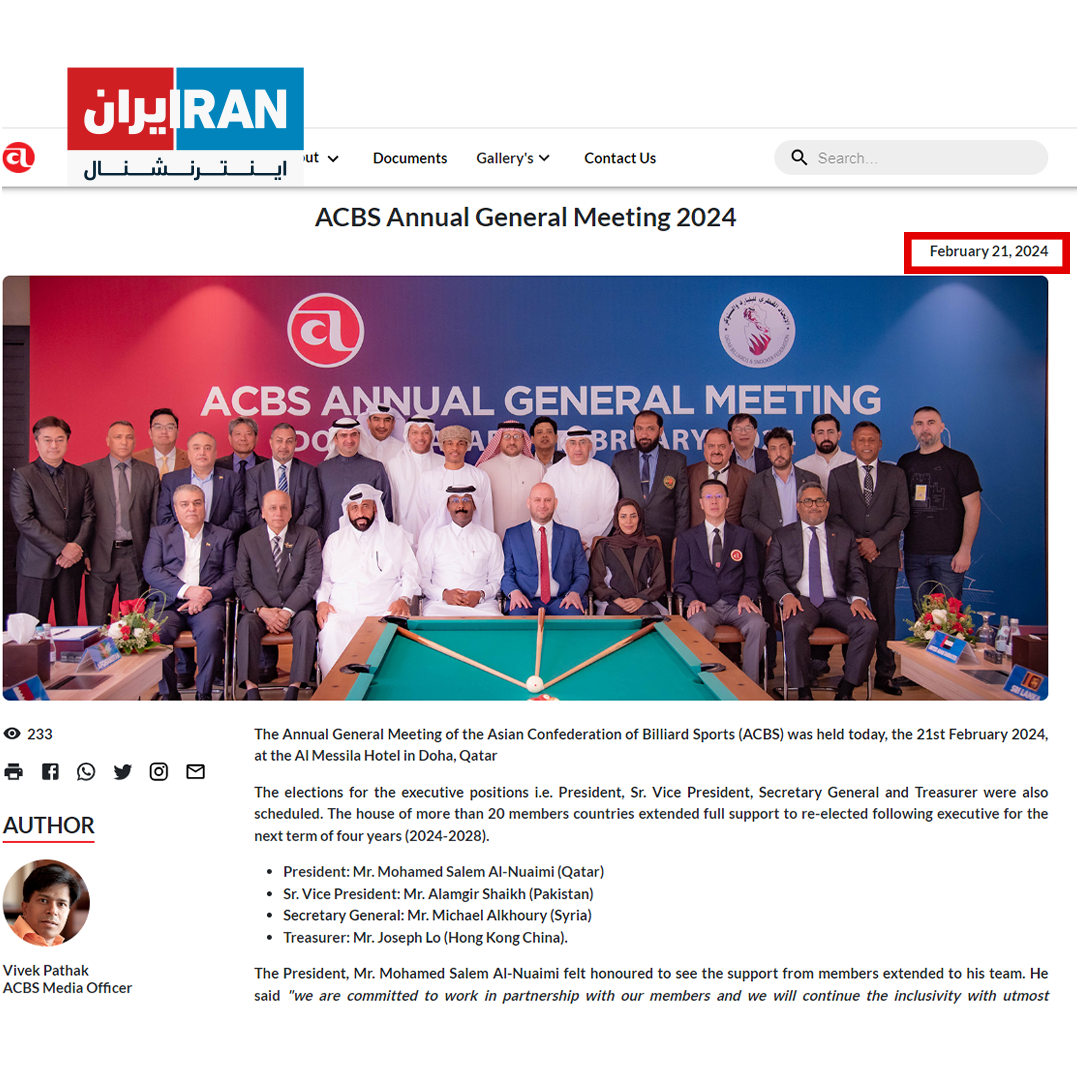 انتشار این خبر کذب و جعل عنوان نایبرئیس کنفدراسیون آسیا توسط اسکندری، سرپرست و رئیس سابق فدراسیون بولینگ و بیلیارد ایران، در حالی صورت گرفته که در خبر رسمی منتشرشده توسط کنفدراسیون ورزشهای بیلیاردی آسیا، اسامی منتخبان چهار ساله به شرح زیر آمده؛