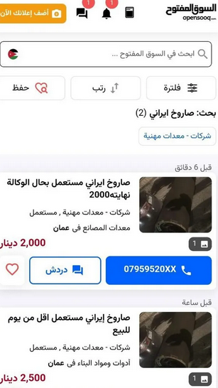شبکه العربیه گزارش داد که برخی از شهروندان اردنی لاشهها و قطعههای موشکهای بالستیک ساقطشده در جریان حمله جمهوری اسلامی به اسرائیل را در سایت نیازمندیها و رسانههای اجتماعی، بهعنوان «آهن قراضه» برای فروش به حراج گذاشتند.
