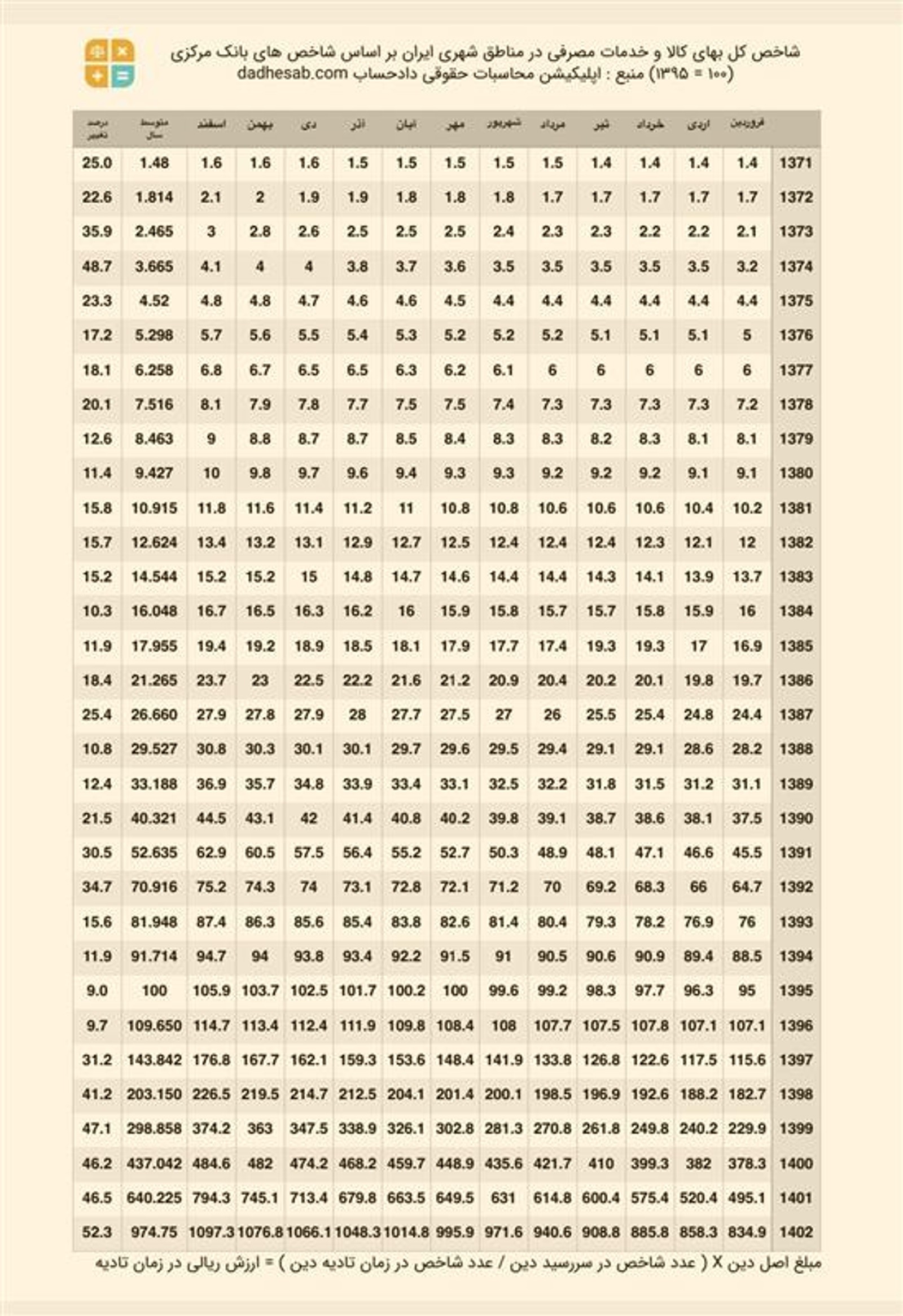 بانک‌ مرکزی در جدول محاسبه تادیه بدهی و مهریه، نرخ تورم سالانه در سال ۱۴۰۲ را ۵۲/۳ درصد اعلام کرد که بالاترین نرخ تورم سالانه از ۸۰ سال قبل تا کنون است.