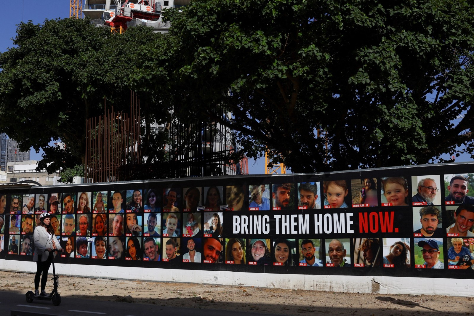 تصاویر گروگان‌های در بند حماس بر روی دیواری در تل‌آویو، یک‌شنبه دوم اردیبهشت