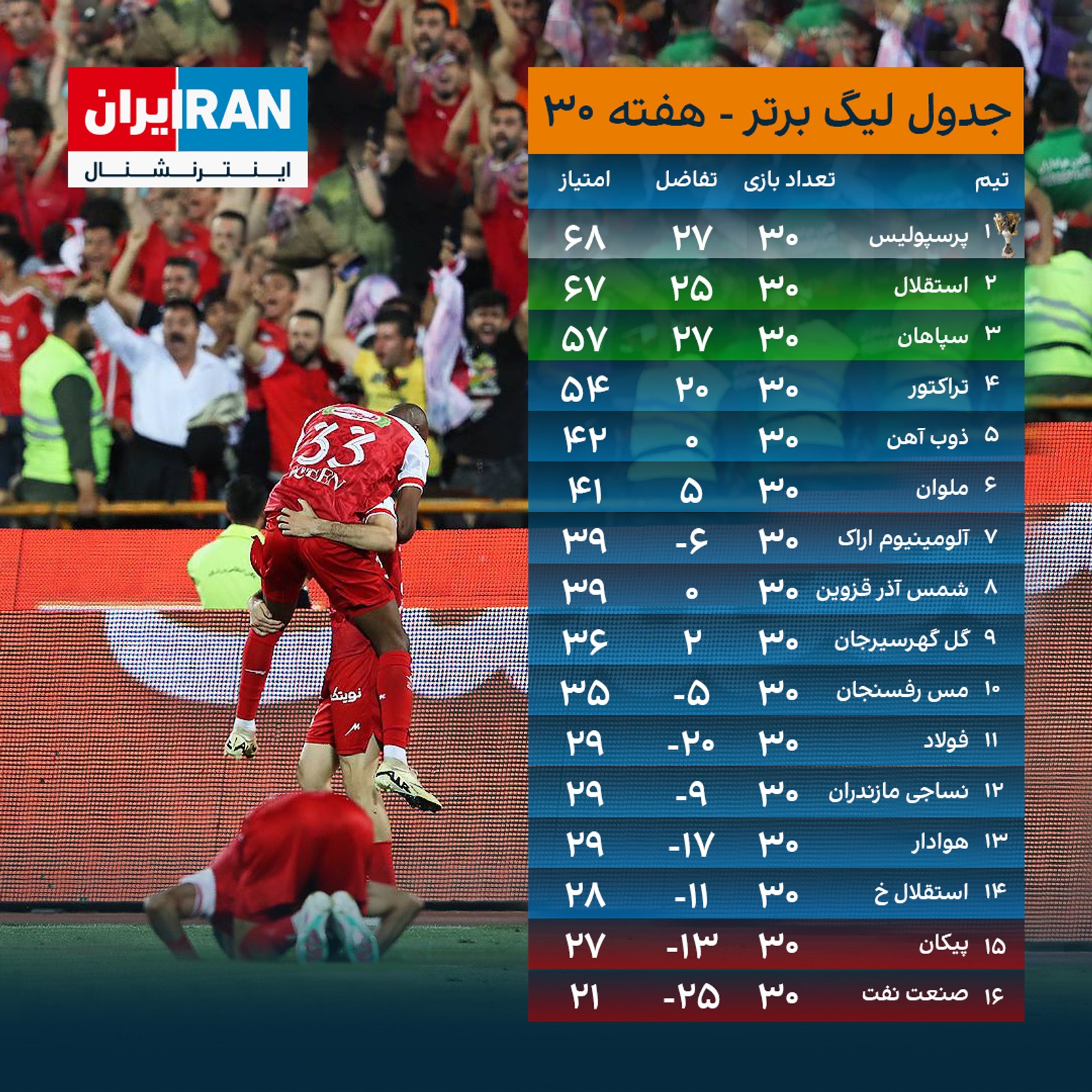 تراکتور هم با پیروزی ۱-۳ مقابل ملوان، با ۵۱ امتیاز در رده چهارم باقی ماند.