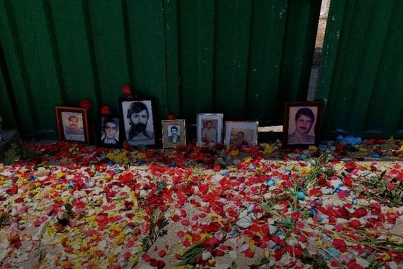 بر اساس گزارشها، خانوادههای قربانیان گلهای خود را پشت درهای بسته خاوران قرار دادند.