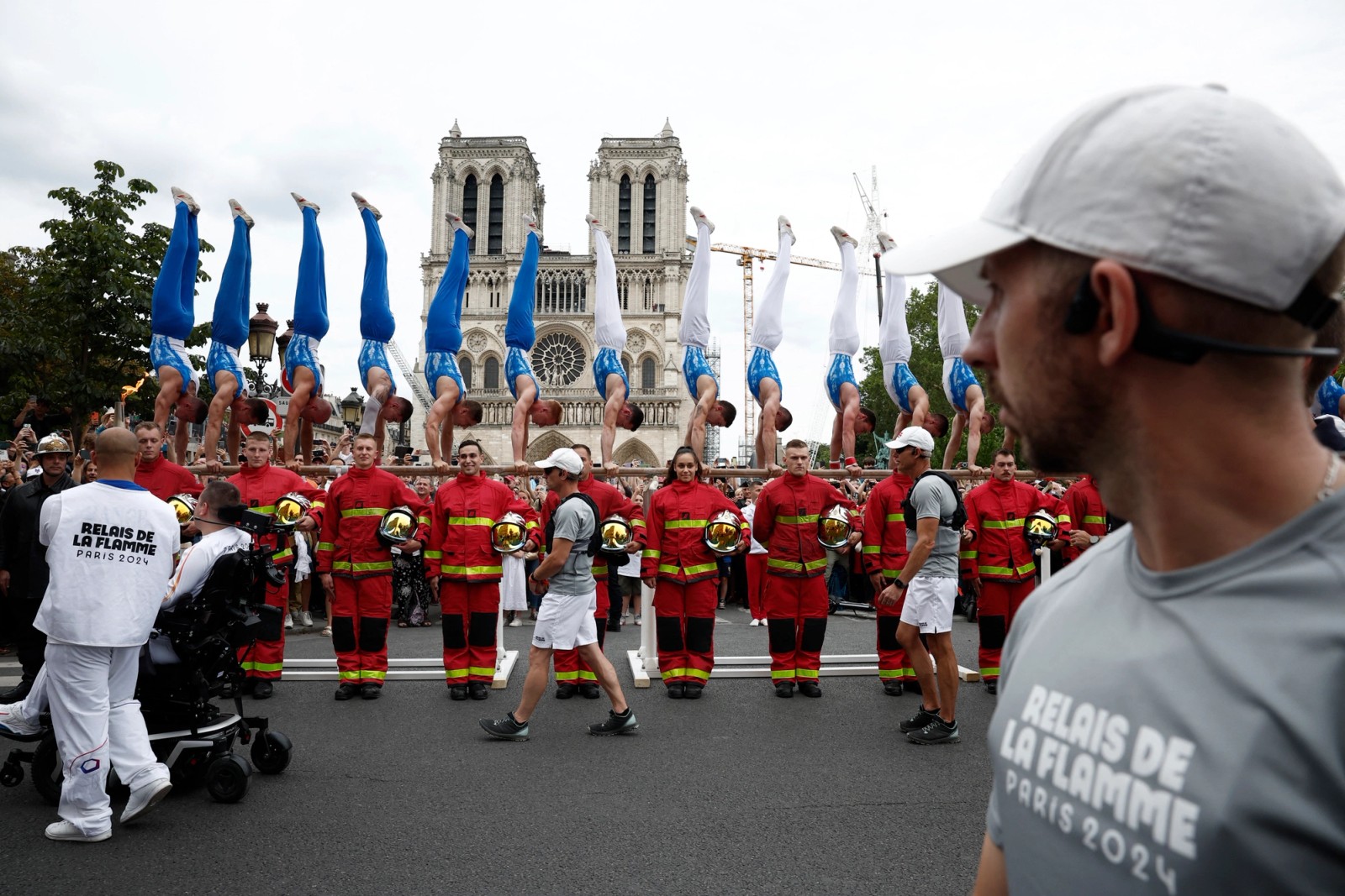مراسم استقبال از مشعل بازی‌های المپیک در مقابل کلیسای نتردام، پاریس، ۲۴ تیر