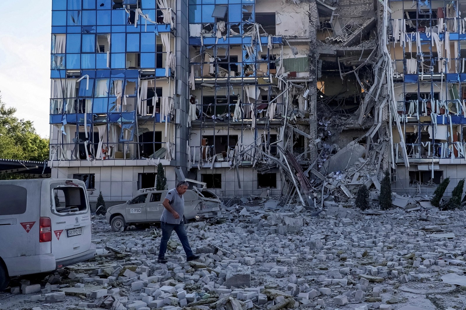 ویرانه‌های به جا مانده از حمله موشکی روسیه به شهر خارکیف اوکراین، سوم مرداد