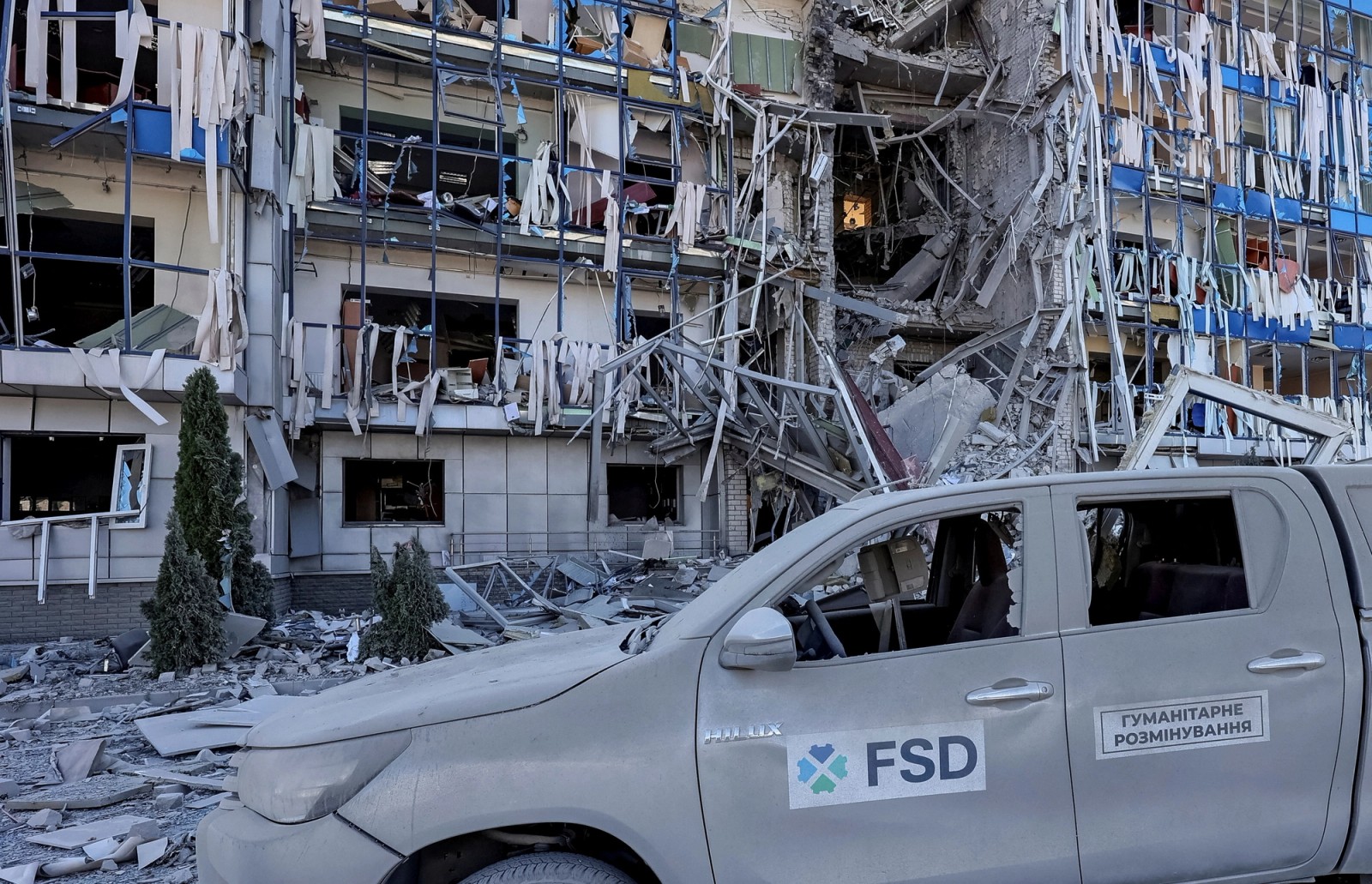 ویرانه‌های به جا مانده از حمله موشکی روسیه به شهر خارکیف اوکراین، سوم مرداد