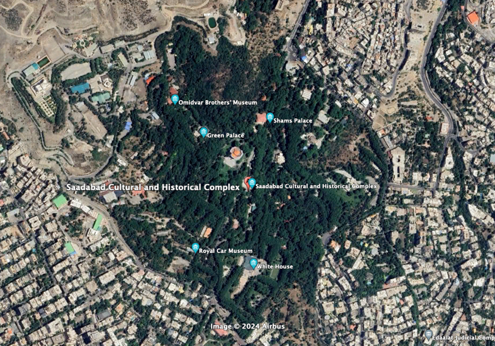مجموعه سعدآباد با تقریبا ۶۰۰ متر طول و ۵۰۰ متر عرض، حدود ۳۰۰ هکتار مساحت دارد و سالهاست که جمهوری اسلامی از آن برای مراسمهای مختلف دولتی استفاده میکند.