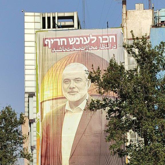 بر اساس تصاویری که از تهران منتشر شده، در پی کشته شدن اسماعیل هنیه، بنری در میدان فلسطین تهران نصب شده که بالای تصویر بزرگی از او نوشته «در انتظار مجازات سخت باشید.»