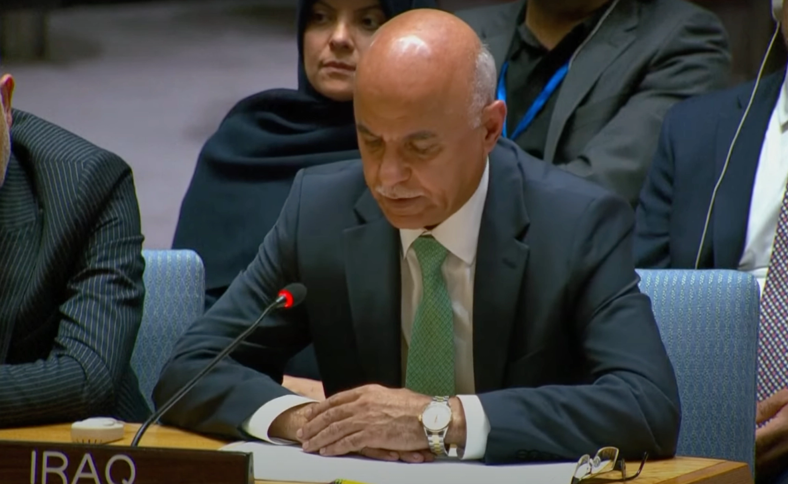 نماینده عراق در سازمان ملل در نشست اضطراری شورای امنیت با گفتن این‌که تشدید تنش‌های کنونی منطقه نتیجه «۷۵ سال اشغالگری» اسرائیل است، گفت: «جامعه بین‌المللی و سازمان ملل نیز در این مدت نتوانسته‌ است برای این معضل راه‌حل پایداری ارائه کند.»