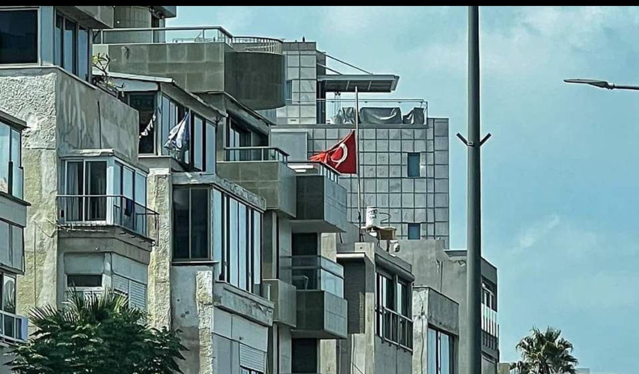 سفارت ترکیه در اسرائیل، پرچم خود را به احترام اسماعیل هنیه به حالت نیمه افراشته درآورد.