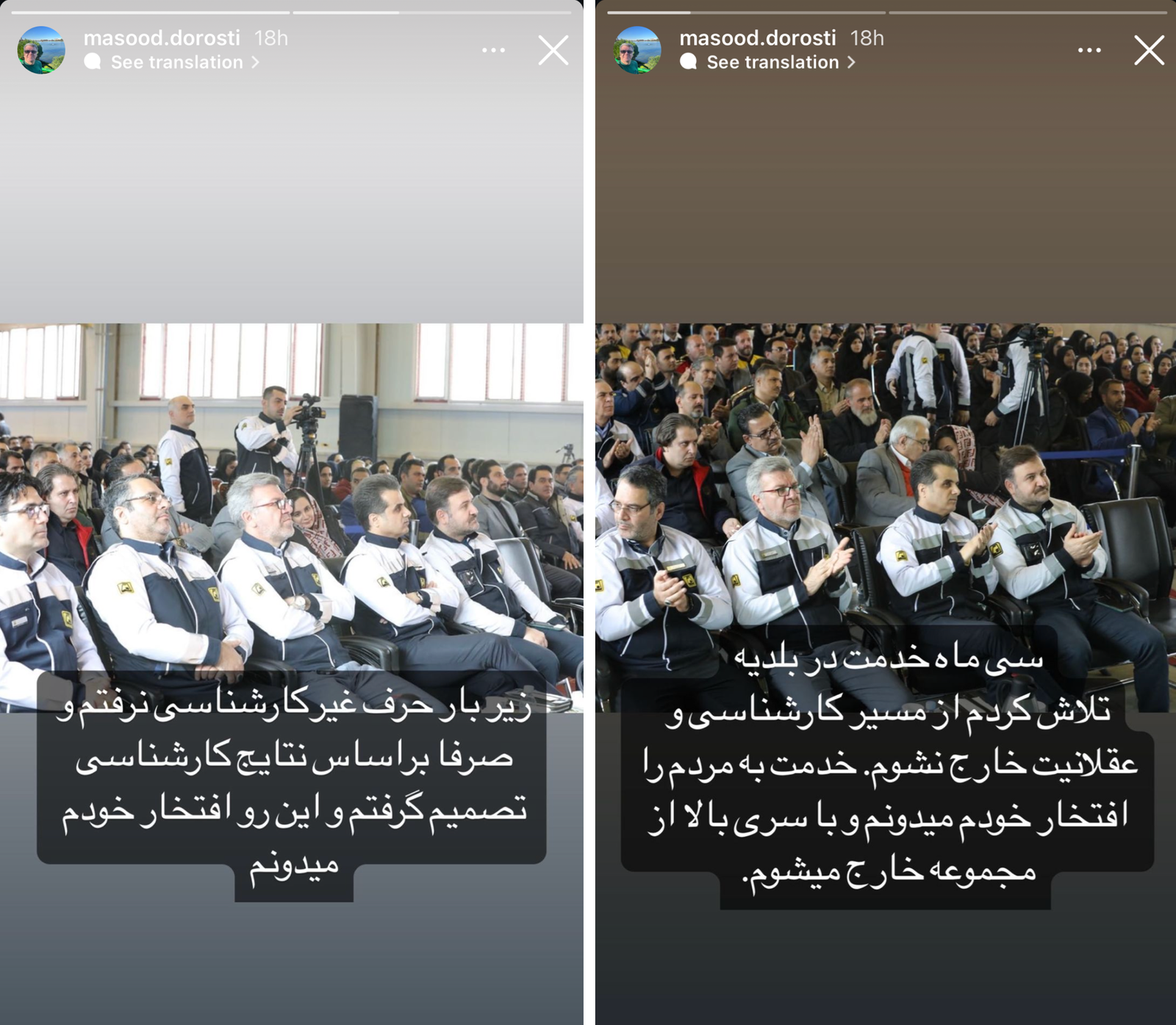 استوریهای مسعود درستی پس از برکناری
