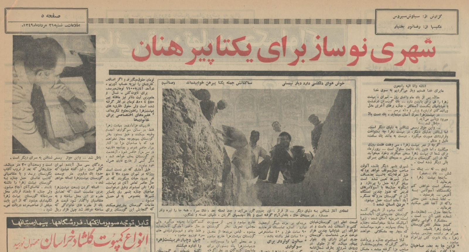 گزارش خبرنگار روزنامه اطلاعات، از گورستان جدید تهران به نام «بهشت زهرا» مرداد ۱۳۴۹