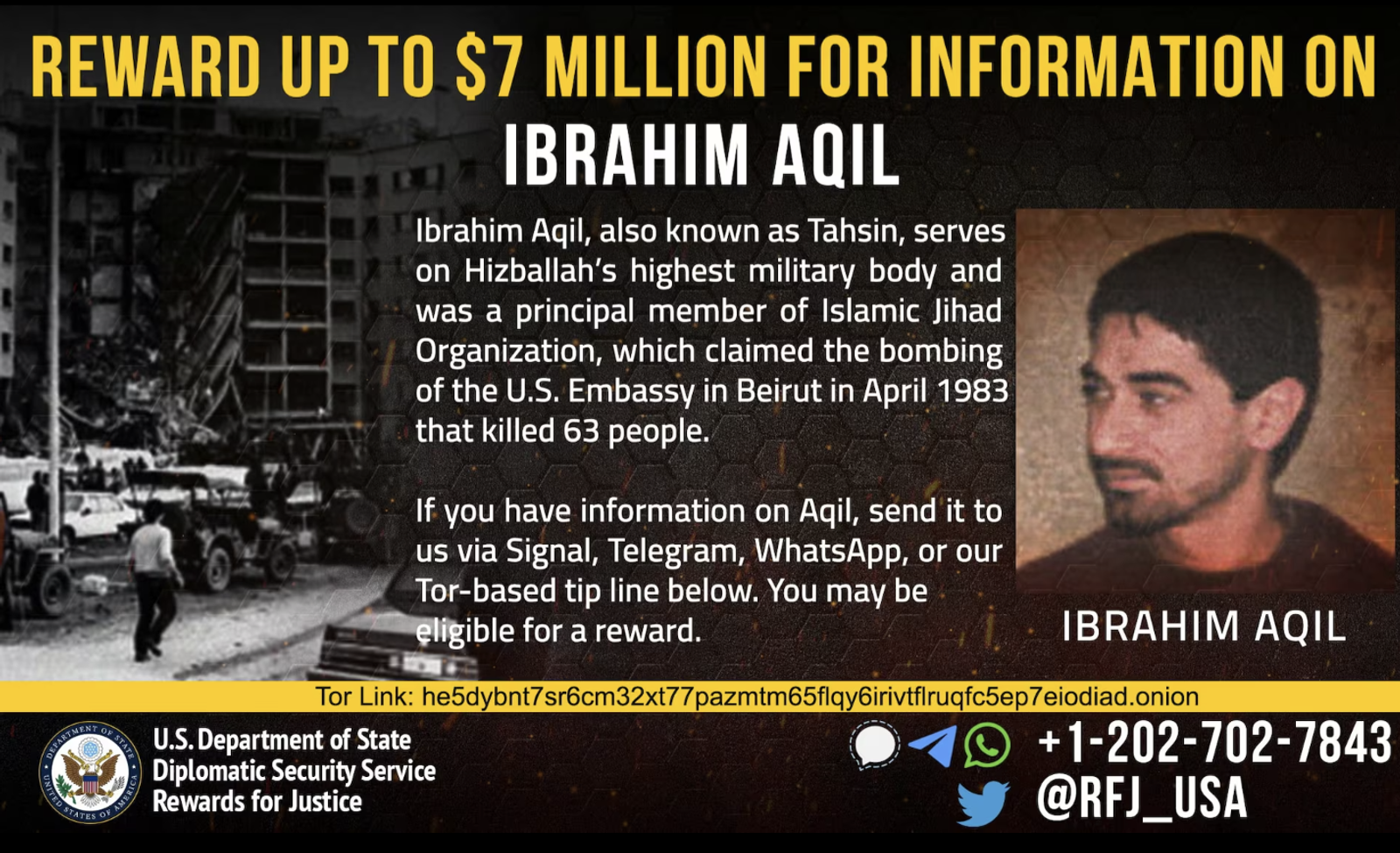 این گروه که به حزبالله وابسته بود در نیمه دوم دهه ۸۰ میلادی به طور کامل در حزبالله جذب شد و از بین رفت. بنا بر اعلام وزارت خارجه آمریکا، عقیل در هر دو انفجار مسئولیت داشت و بعدتر هم فرماندهی عملیات به گروگان گرفتن شهروندان آمریکایی و آلمانی در لبنان را بر عهده داشت.
