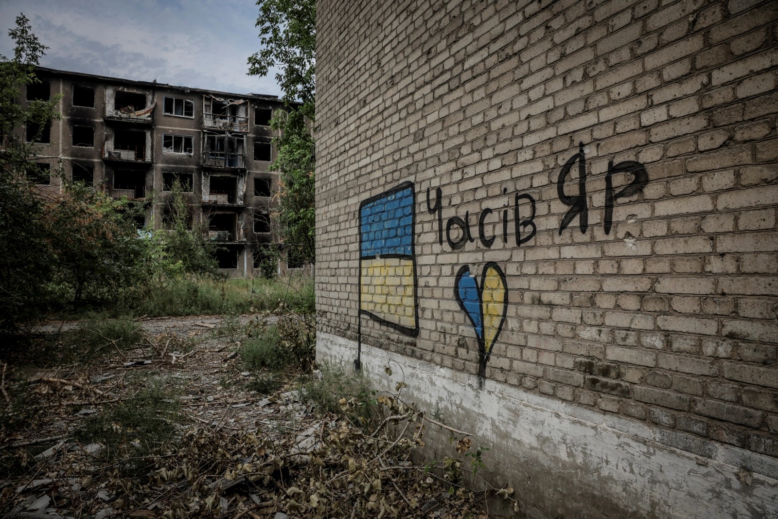 ویرانیهای به جا مانده از حملات روسیه به شهر چاسیو یار در منطقه دونتسک اوکراین، ۱۲ شهریور
