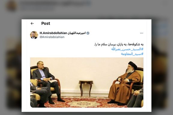 صفحه ایکس حسین امیرعبداللهیان، وزیر خارجه پیشین جمهوری اسلامی که در سقوط بالگرد کشته شد، در واکنش به کشته شدن حسن نصرالله تصویری از او به همراه امیرعبداللهیان منتشر کرد و نوشت: «به شکوفهها، به باران، برسان سلام ما را.»