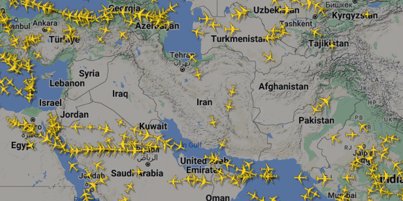 انتخاب بسیاری از پروازها برای اجتناب از بخش‌هایی از حریم هوایی خاورمیانه، باعث شده است ترافیک هوایی بر فراز محورهای استانبول، قاهره و آنتالیا متراکم شود.
