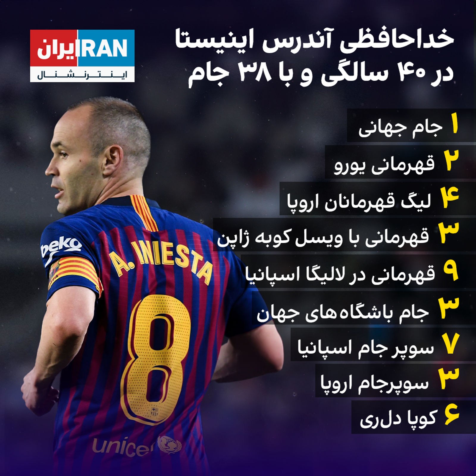 آندرس اینیستا، اسطوره بارسلونا، در ۴۰ سالگی از فوتبال خداحافظی کرد