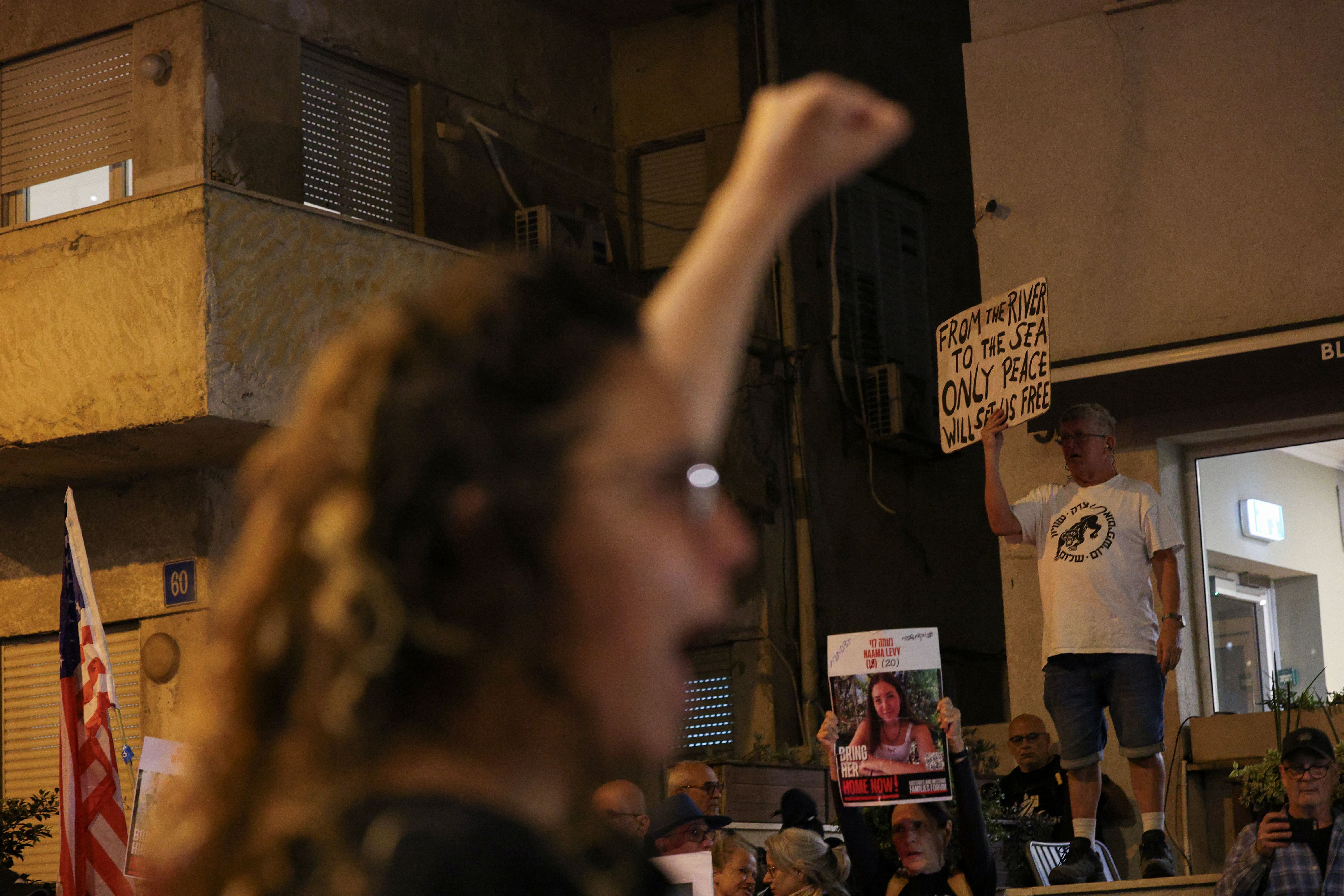 در میان این افراد، اعضای خانوادهها و حامیان گروگانهای ربوده شده حماس در جریان حمله هفتم اکتبر به اسرائیل حضور داشتند.