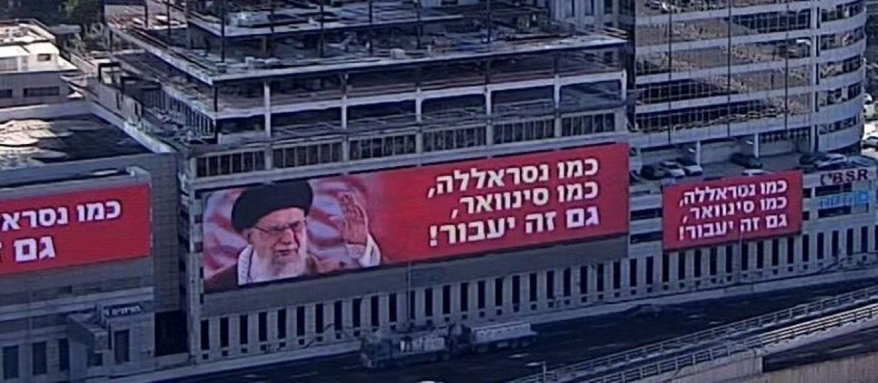 تصویری از علی خامنهای همراه با نوشتهای تهدیدآمیز درباره او، روی یک دیوارنگاره بزرگ در مرکز تلآویو منتشر شد.