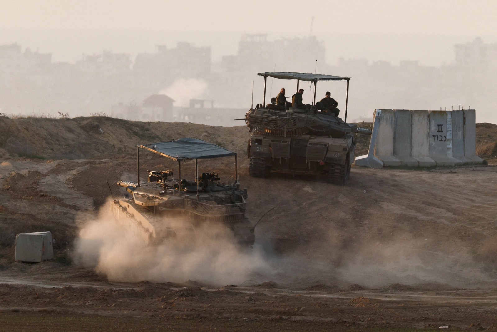 تانک‌های ارتش اسرائیل در نزدیکی مرز نوار غزه، دوم دی
