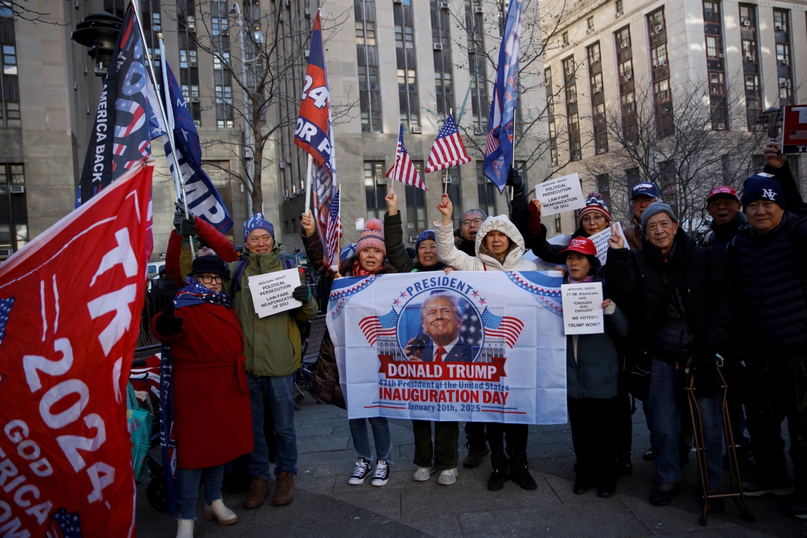 تجمع طرفداران دونالد ترامپ در مقابل دادگاه کیفری نیویورک، منهتن، ۲۱ دی