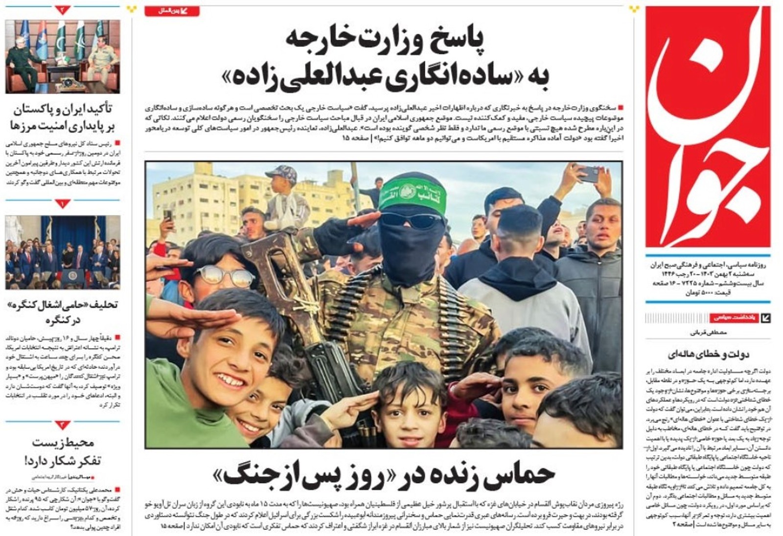 روزنامه جوان، وابسته به سپاه پاسداران نیز مانند کیهان، درباره تبعات بازگشت ترامپ برای تهران سکوت کرده و از زاویه داخلی تحلیف را مورد بررسی قرار داده است.
